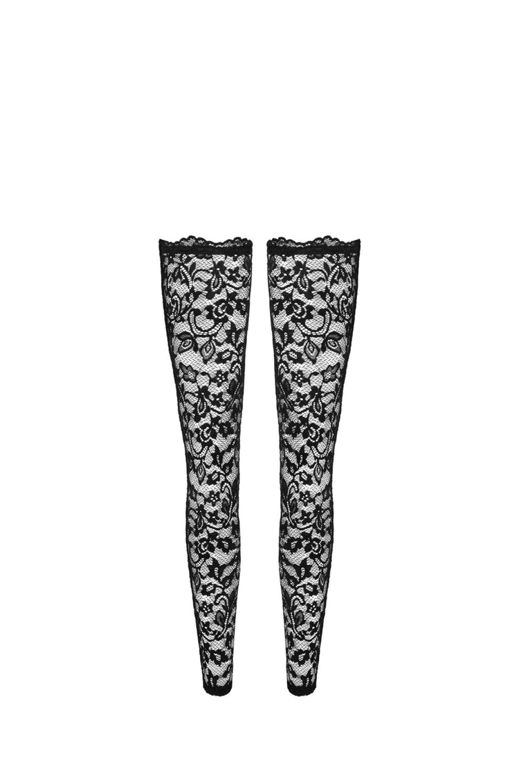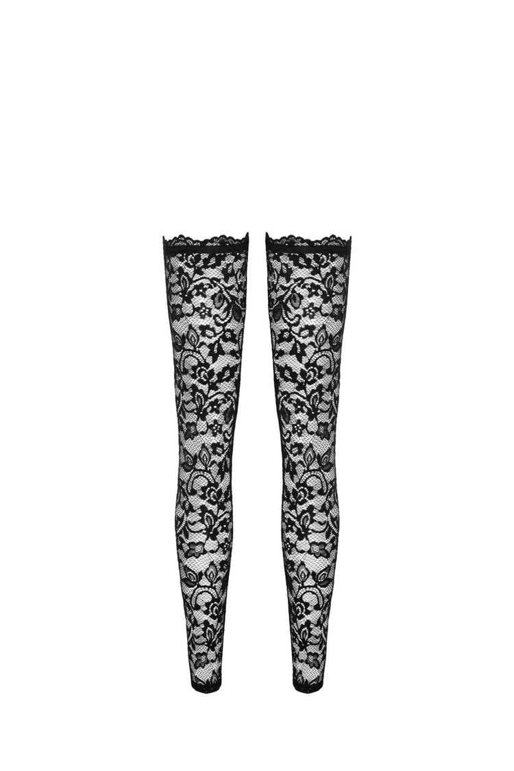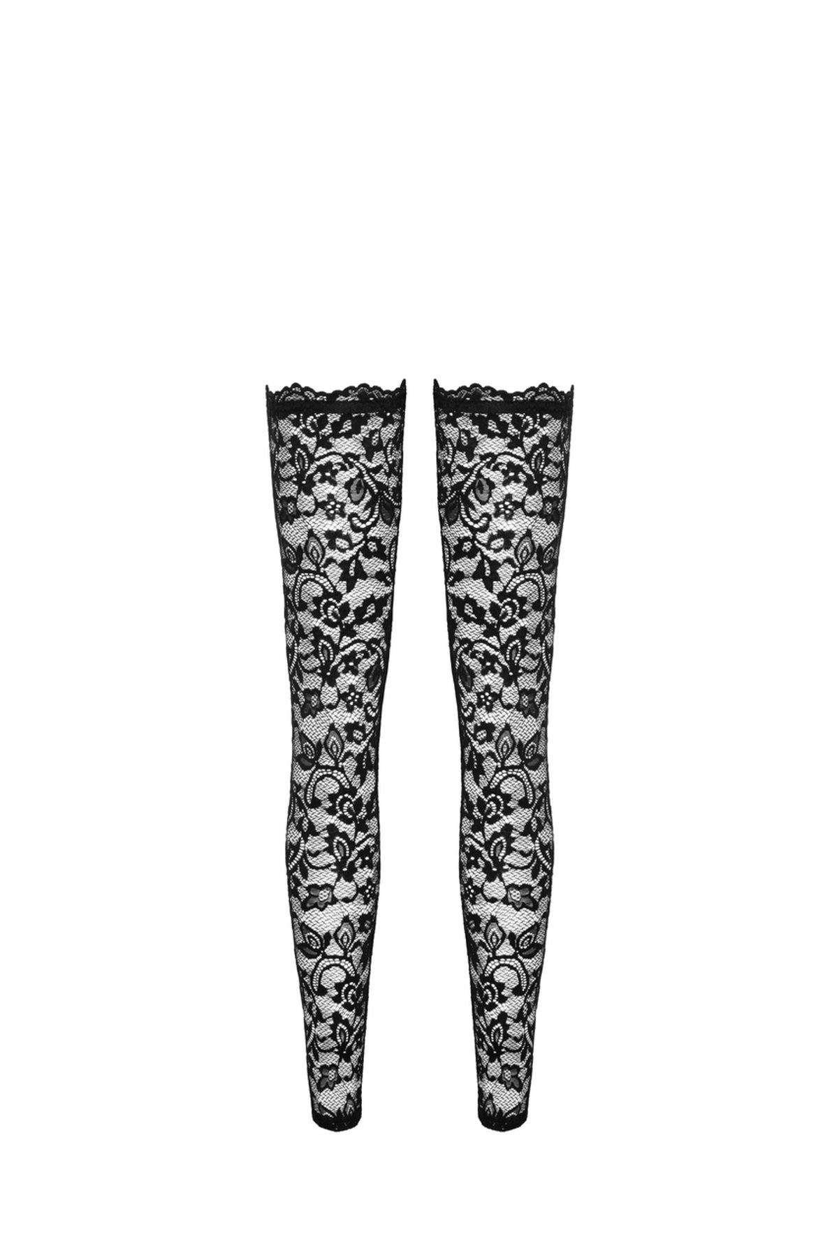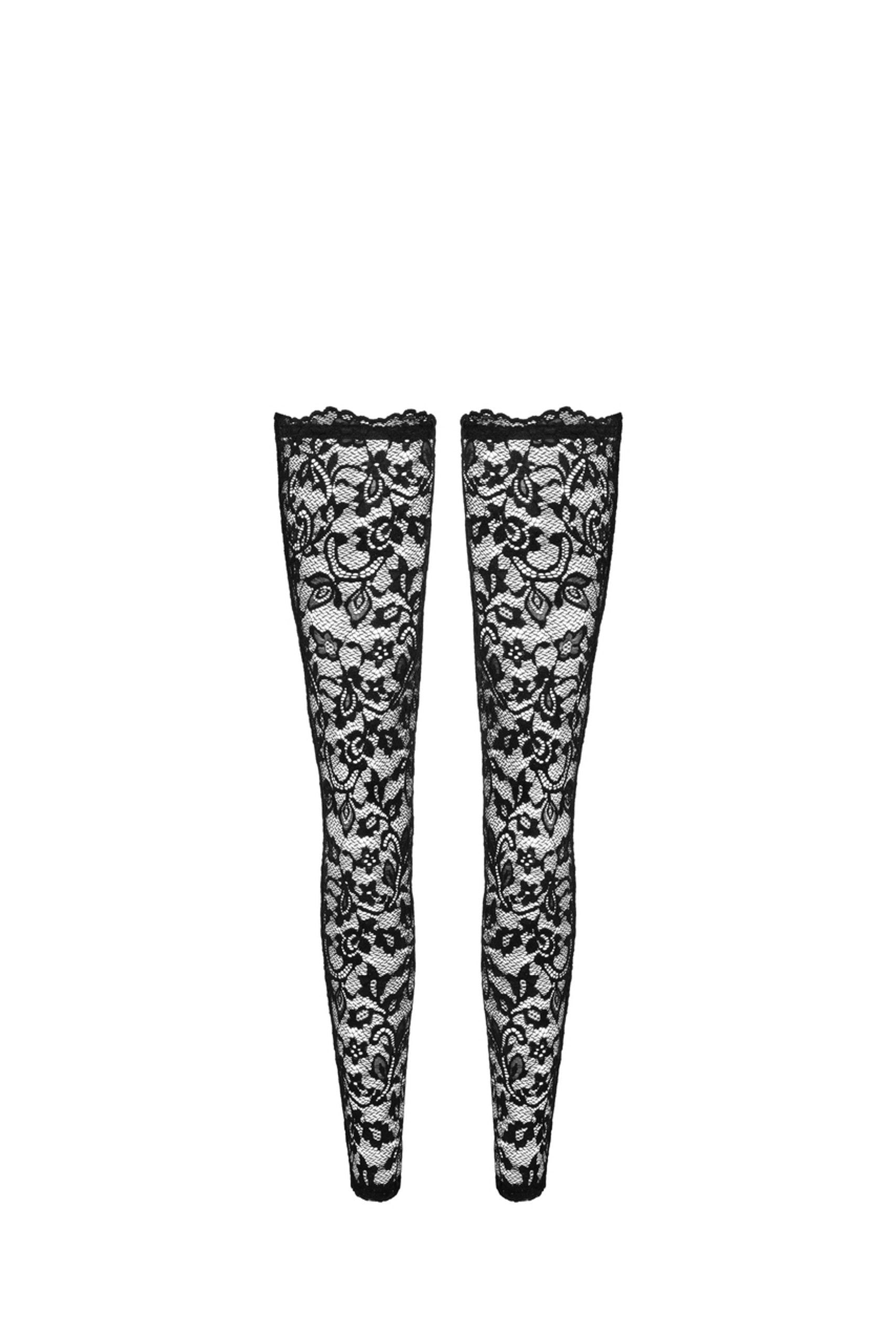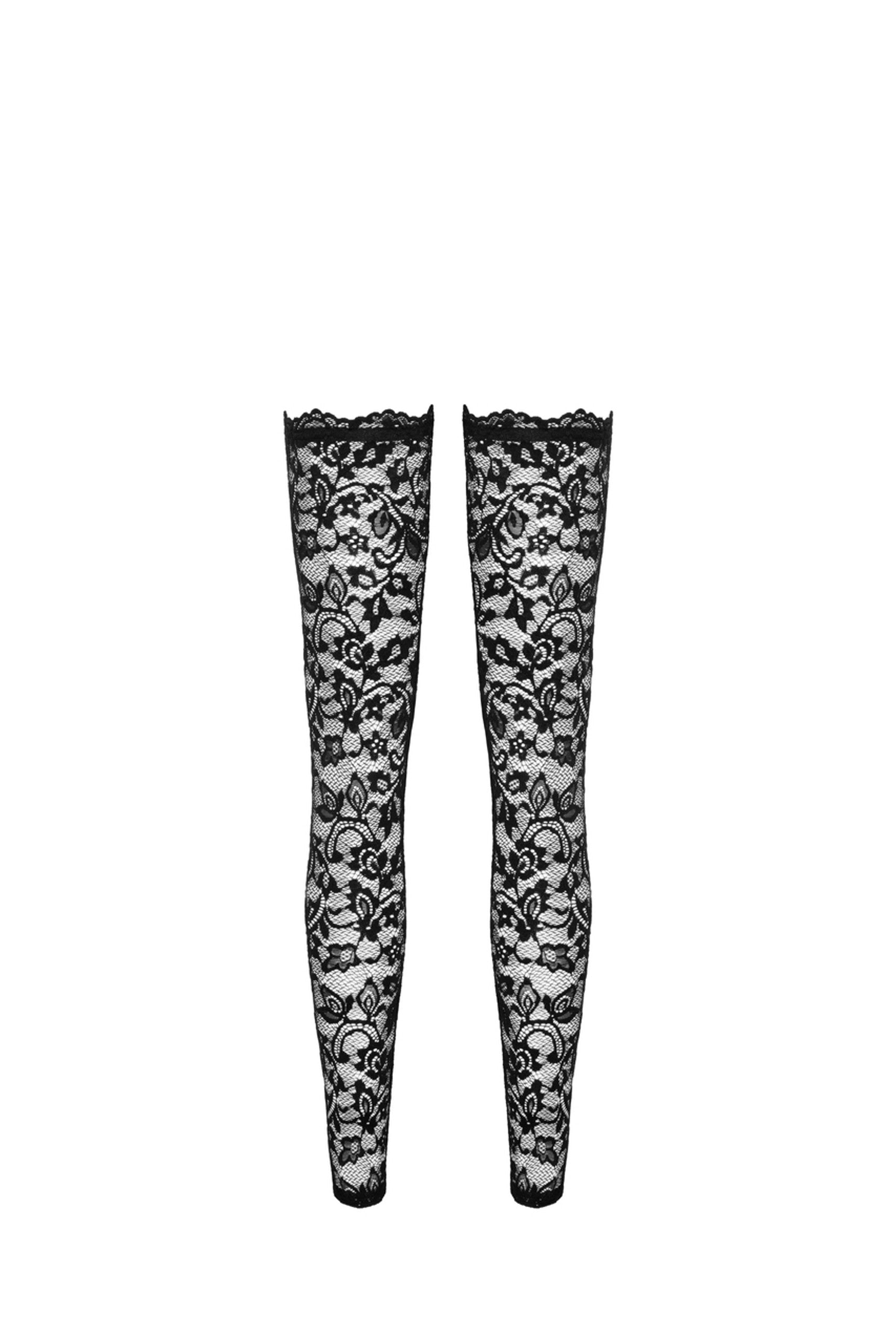 These black lace stockings are intricately designed with a detailed floral pattern, crafted from stretchable fabric that ensures both a comfortable and form-fitting wear. The thigh-high cut is complemented by reinforced cuffs with added silicon tape, which serves to securely keep the stockings in place without sliding down. The thigh-high cut is complemented by reinforced cuffs with added silicon tape, which serves to securely keep the stockings in place without sliding down. These stockings are ideal for a range of occasions, from formal events to more fashion-forward contexts. They integrate seamlessly with a diverse array of outfits and footwear, adding a sophisticated touch to any look. The lace material provides the right balance of breathability and full coverage, making them a practical yet chic choice for your retail line up. Available in multiple sizes, these stockings are tailored to meet the needs of a variety of body types.